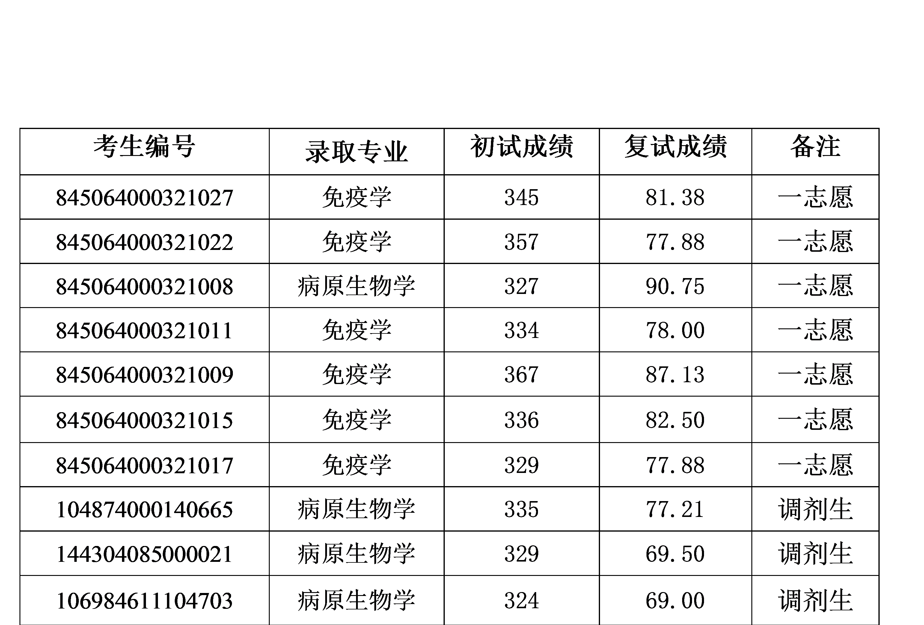 根据教育部关于印发《2024年全国硕士研究生招生工作管理规定》的要求,现将我所根据复试录取方案确定的拟录取名单予以公示(为保护考生隐私使用全国统考考生编号),公示期为2024年5月6日-2024年5月19日。公示期间,考生若有疑问,可向我所有关部门反映。武汉生物制品研究所研招办及纪委联系方式: